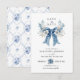 Dusty Blue Floral Bow Save the Date Wedding Card Spara Datumet