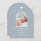 Dusty Blue Fotograch-pojken Baptism Inbjudningar