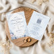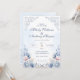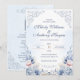 This elegant wedding design features soft dusty blue watercolor flowers, delicate French garden details, and romantic ornamental scrollwork. The layout feels refined and timeless, making it a beautiful choice for classic, formal, and romantic wedding celebrations. Pale blue florals with subtle blush accents create a graceful and airy look that works especially well for spring and summer weddings. The coordinated front and back design also pairs beautifully with wedding website and RSVP QR code details.