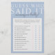 Den här söta, gissa vem som sa det, Mamma eller babyduschspel i dammigt blått, vitt och grått har fet, modern typografi och ett vismiskt kalligrafiskt skript. Frågorna är redigerbara och fullständiga instruktioner för spelet skrivs ut på spelet lakan. Designad att samordna med min Dusty Blue Oh Baby! Bebisduschsamling för pojke. Se till att du bläddrar i de andra objekten för att skapa en snyggt, samordnad sökning efter din babydusch firande. Kontakta mig på admin@albamarie.com om du behöver hjälp med att anpassa det här objektet eller vill att jag skapar ytterligare matchande produkter. Jag skulle vara lycklig för att hjälpa till!