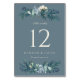 Dusty Blue Grått Winter Blommigt Bröllop Bordsnummer