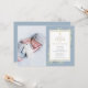 Med känsliga akvarellblad på en dammig blå bakgrund och ett elegant guldkors kan denna snygga dop- eller dopinbjudan anpassas med ditt speciella foto och evenemangsinformation. Designad av Thisisnotme©