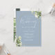 Den här eleganten kan inbjudan till ett dammigt blått bröllop med blommigt i botanisk grey vara personlig med din information i chic typografi med ditt speciella foto på motsatt sida. Designad av Thisisnotme©
