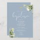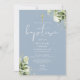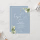 Dusty Blue Greenery Blommigt Monogram Baptism Inbjudningar