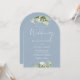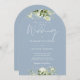 Dusty Blue Greenery Blommigt Monogram Bröllop Arch Inbjudningar