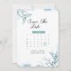 Dusty Blue Greenery Eucalyptus Lämnar inbjudan till Bröllop spara datum. Den här utformningen har en vattenfärg, grönt eukalyptus foliage och en kalender från juni. Du kan anpassa informationen och lägga till mer på baksidan om det behövs. Visa samlingen på den här sidan om du vill söka efter fler matchande objekt.