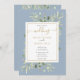 Dusty Blue Greenery Guld Geometric Script Bröllop Inbjudningar