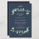 Dusty Blue Greenery Leafy Budget Bröllopsinbjudan