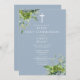 Den här eleganten är eukalyptus grey botanical dusty blue first heliga communion, förutom att inbjudan kan vara personlig med dina uppgifter i chic typografi med monogram initialer på motsatt sida. Designad av Thisisnotme©