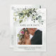 Dusty Blue Greenery Photo Bröllop spara datum Vykort