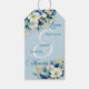 Dusty Blue Guld Glitter Blommigt Bröllop Presentetikett