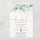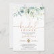 Dusty Blue Guld Grönska Eukalyptus Bröllopsdusch Inbjudningar
