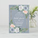 Dusty Blue Guld Rosa Peach Inbjudningskort för möhippa - Utformningen har en dammig blå bakgrund i vattenfärgen med guld ram som trimmas i eukalyptus och grönt med blommigt inslag i grått/vitt, dammblått och rosa/persika. Visa matchningssamlingen på den här sidan om du vill söka efter matchande produkter.