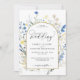 Dusty Blue Gult Daety Blommigt Botanical Bröllop Inbjudningar