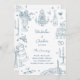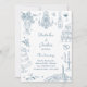 Dusty Blue Hand plockade Whimsical Bröllopsprogram Inbjudningar