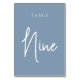 Dusty Blue Hand Scripted Bord NINE Bordsnummer