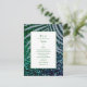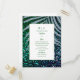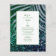 Designad med konstnärligt dammiga handflatan lämnar mönster i glitterbakgrund, perfekt för tropiska eller konstnärliga, färgstarka bröllopsinbjudningar som du kan anpassa som du vill!