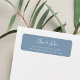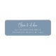 Dessa enkla och elegant returetiketter är designade för att matcha våra Modern Handskriftlig bröllopsinbjudningar. En vacker typografibaserad design med minimalistisk känsla, med moderna handskrivna skript och klassiska serif-bokstäver. Färgväg: Dusty Blue, ett muterat medelblått.