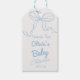 Dusty Blue Handskriven blått bogbladig Pojke-dusch Presentetikett