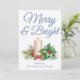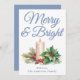 Dusty Blue Handwrite Merry & Bright Julkort