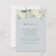 This elegant wedding details card features a light dusty blue background with white hydrangea in watercolor. Personalize it for your needs. You can find matching products at my store.