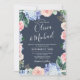 Dusty blue hydrangeas pastel rosa ros bröllop i inbjudningar