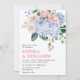 Dusty blue hydrangeas pastel rosa ros bröllop inbjudningar