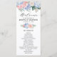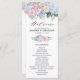 Modern kort för bröllopsprogram med ljusblå/ dammiga blåa vattenfärgsvätskor med pastellfärgad rosa, , persika, vit ros, ponnyer, eucalyptus löv, grenar och löv. Mutta, mjuka och drömmande romantiska skuggor med vår sommarens vattenfärgsdesign för blommigt så att den stämmer överens med bröllop. Hitta fler matchande utformningar och variationer från min "blissweddingpaperie"-butik. Och kontakta mig gärna för ytterligare anpassning eller matchning av objekt.