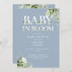 Dusty Blue in Bloom Greenery QR Code Baby Shower Inbjudningar