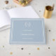 Create a timeless keepsake for your special day with this luxury monogram guest book in dusty blue, beautifully finished with an elegant wreath design and personalized initials. Ivory text