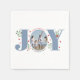 Dusty blue Joy med bär Julfoto Helgdag papper napkin. Det visar ord "JOY" med röda bär och grönt medan det i stället för brev "O" finns ett familjefoto.