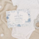 This design was inspired by vintage wildlife sketchbooks and the quiet beauty of the safari. Soft dusty-blue line drawings of giraffes, elephants, zebras, and tropical leaves frame the invitation like a gentle jungle scene. It’s elegant, calm, and perfect for welcoming a little explorer on the way.