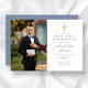 Personlig Dusty Blue Kor Photo Boy First Communion bjudan. En del av Dusty Blue Script Kor Boy First Communion Suite med matchande kontorsutrustning och första party-tillbehör.
