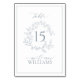 Dusty Blue Leafy Vapensköld Monogram Bröllop Bordsnummer
