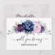 Elegant dammig blått Lila lilac lavender blommigt kommer du att vara min bridesaid-inbjudan med elegant buquet av dammiga blåblått, marin, lila, lök blommor från färg ro och sage grönt eucalyptus löv. Kontakta mig om du behöver hjälp med anpassning eller om du behöver någon annan produkt med den här designen.