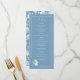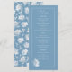 This elegant dusty blue wedding menu features a delicate white line art rose in the corner, and a graceful calligraphy script title. Its minimalist layout beautifully highlights your reception dishes, making it perfect for showcasing wedding dinner courses, reception meal choices, and thoughtfully planned catering selections. The subtle floral illustration adds a romantic touch while keeping the focus on the food, creating a stylish and modern piece for any celebration. Ideal for couples who appreciate soft botanical details and a cohesive dusty blue wedding menu aesthetic, this design elevates the presentation of your carefully curated wedding meal.