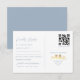 Romantiskt blått vykort för OSA med två guld-levande fåglar och en byggt QR-kod för digitalt svar. Designat för bekvämlighet och elegans, detta svarskort innehåller utrymme för gäst namn, måltider och ett utskick av adress. Den mjuka pastellblåa och guld-paletten är idealisk för romantiskt, modernt och naturtematiskt bröllop. En snyggt och ett funktionellt tillskott till dammiga blå bröllop-svit - miljövänligt och lätt att posta.
