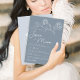 Elegant modern minimalistisk manusblått med blommigtens gigantiska bröllopsinbjudan.