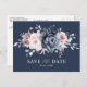 Dusty Blue Mauve Ro Rosa Blommigt Spara datum Po Vykort