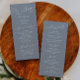 Minimalt bröllopsprogram med modernt skriptteckensnitt på en dammig blå bakgrund. Alla ceremonier i bröllop och bröllopsfestens namn som finns med på detta program.