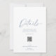 Kortet i elegant bröllop har en skarp vit bakgrund med mjuk dammig blå text i en ren, modern layout. En skriptrubrik för snyggt och byggt QR-kodguide till gästerna på webbplatsen för bröllop för all viktig information - plats, logi, schema med mera. Perfekt för klassiskt och romantiskt bröllop stilar.