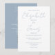 Den här dammiga blåa minimalistiska eleganten-manusinbjudan kan vara personlig med din information i chic typografi med din webbplatsinformation om bröllop och din QR-kod på motsatt sida. Designad av Thisisnotme©