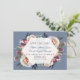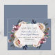 Elegant med delikat dammblått, mistigt ro vattenfärgad blommigt bouquets, faux guld foil ram, på vit bakgrund, handskriftstypografi, och även på baksidan en marin blå bakgrund. Ett underbart val för alla säsonger i bröllop, särskilt för höst- eller vinterbröllop. Använda Anpassa verktyg om du vill lägga till information och ändra typsnitt färg. Om du vill ha matchande artiklar kan du besöka min Dusty Blue Misty Ro Flowers Collection.