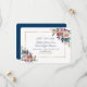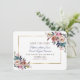 Elegant med delikat dammblått, mistigt ro vattenfärgad blommigt bouquets, faux guld foil ram, på vit bakgrund, handskriftstypografi, och även på baksidan en marin blå bakgrund. Ett underbart val för alla säsonger i bröllop, särskilt för höst- eller vinterbröllop. Använda Anpassa verktyg om du vill lägga till information och ändra typsnitt färg. Om du vill ha matchande artiklar kan du besöka min Dusty Blue Misty Ro Flowers Collection.