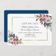 Elegant med delikat dammblått, mistigt ro vattenfärgad blommigt bouquets, faux guld foil ram, på vit bakgrund, handskriftstypografi, och även på baksidan en marin blå bakgrund. Ett underbart val för alla säsonger i bröllop, särskilt för höst- eller vinterbröllop. Använda Anpassa verktyg om du vill lägga till information och ändra typsnitt färg. Om du vill ha matchande artiklar kan du besöka min Dusty Blue Misty Ro Flowers Collection.