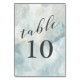 Fantastisk abstrakt i det harmoniska färgen av himlar - dammig till ljusblå, grått och vit ge, denna contemporary för utformning av bord-kort. Det är en elegans som fungerar bra för formella mottagningar eller avslappnader och banketter. Varje kort skrivs ut separat, så du måste skapa ett kort för hela bord individuellt. Redigera bordsnumret, lägg till i kundvagn och upprepa sedan stegen tills du har ett bord-kort för all bord du vill ha.