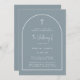 Dusty Blue Modern Arch Script Minimal Christening Inbjudningar