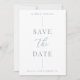 Modern elegant sparar datumkortet med en minimalistisk dammig blå och vit design. Anpassa med din bröllop-information med den lättredigerade mallen med ett elegant-skript och ett klassserif-teckensnitt. Byt ut fotot på framsidan och baksidan mot din egen och uppdatera webbadressen för bröllop. Checka ut matchande objekt i samlingen "Dusty Blue Modern Elegant".