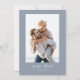 Modern och minimal spara datumkortet med ett elegant som säger "spara datumet" på dammig blå bakgrund i mitten med den korta informationen från bröllop. Du kan lägga till ett foto på baksidan.