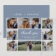 Dusty Blue Modern Photo Collage Bröllop Tack Kort